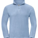 100% poliestere. Pile mezza zip in tessuto consistente e compatto. Superficie liscia, 2 tasche con cerniera, cordino in vita elasticizzato con stopper, struttura con cuciture laterali.